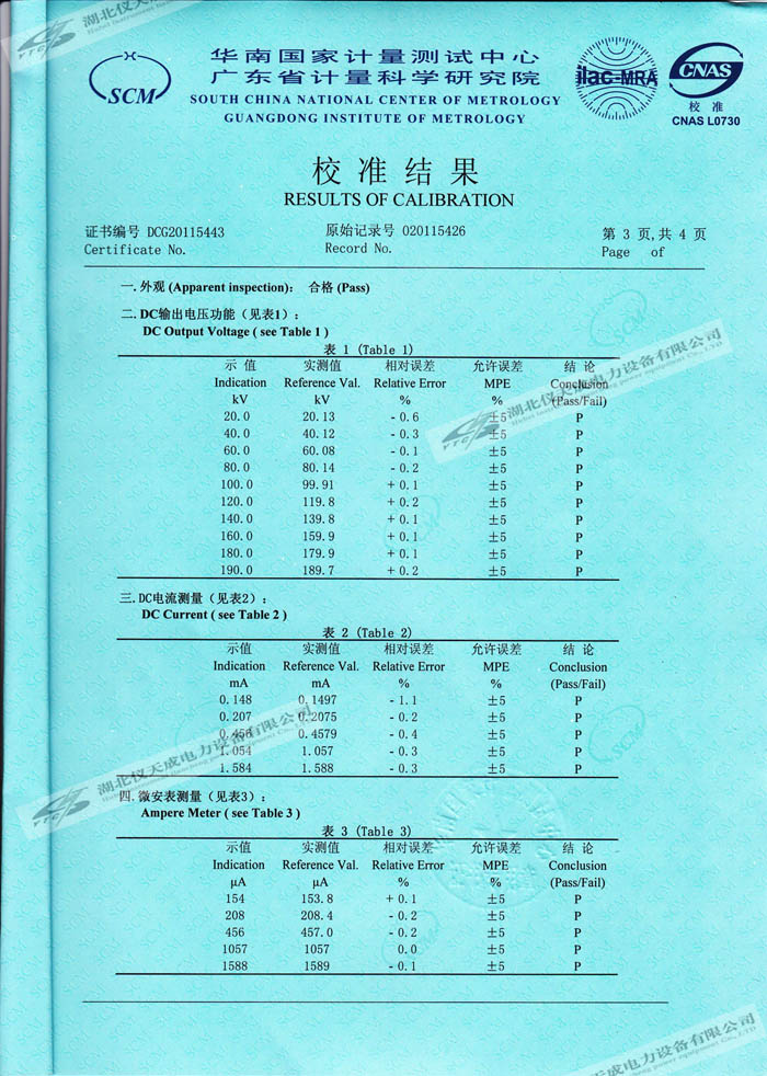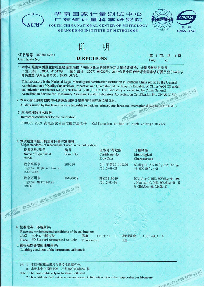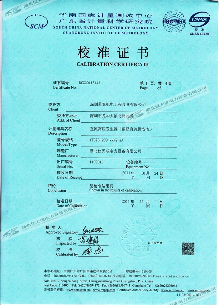 轉(zhuǎn)載:"YTCZG-200kV2mA直流高壓發(fā)生器的資質(zhì)證書(shū)" 請(qǐng)注明來(lái)源于儀天成電力。 更多技術(shù)問(wèn)題請(qǐng)致電儀天成電力客戶(hù)服務(wù):027-87876585,技術(shù)部專(zhuān)線(xiàn):027-87876585,在線(xiàn)客服:719388481